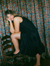 The best-selling Jodie is now available in a dramatic black shade. Featuring feminine broderie anglaise, embroidered straps and a generously shirred neckline with a button down front and flounced ruffle hem.
