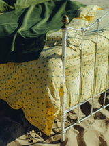 Hand block printed in our debut collection of nostalgic floral prints, our Duvet Cover features a button closure and hidden twill tie corners to secure your duvet insert.