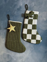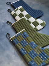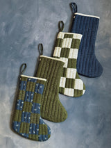 This holiday stocking is lightly quilted with hand-block printed fabric and may vary slightly in the most beautiful way.