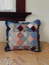 Patchwork Quilt Pillow Sham, Light Blue Ruffle