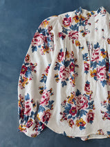 Romantic with an easy fit, our Lucille Blouse is hand block printed and features full shirred sleeves and a shirttail hem.